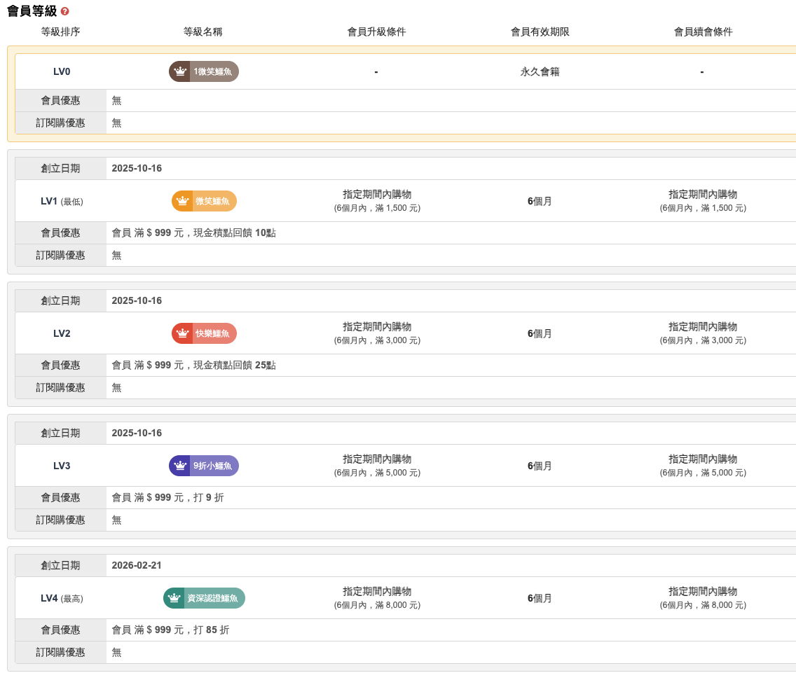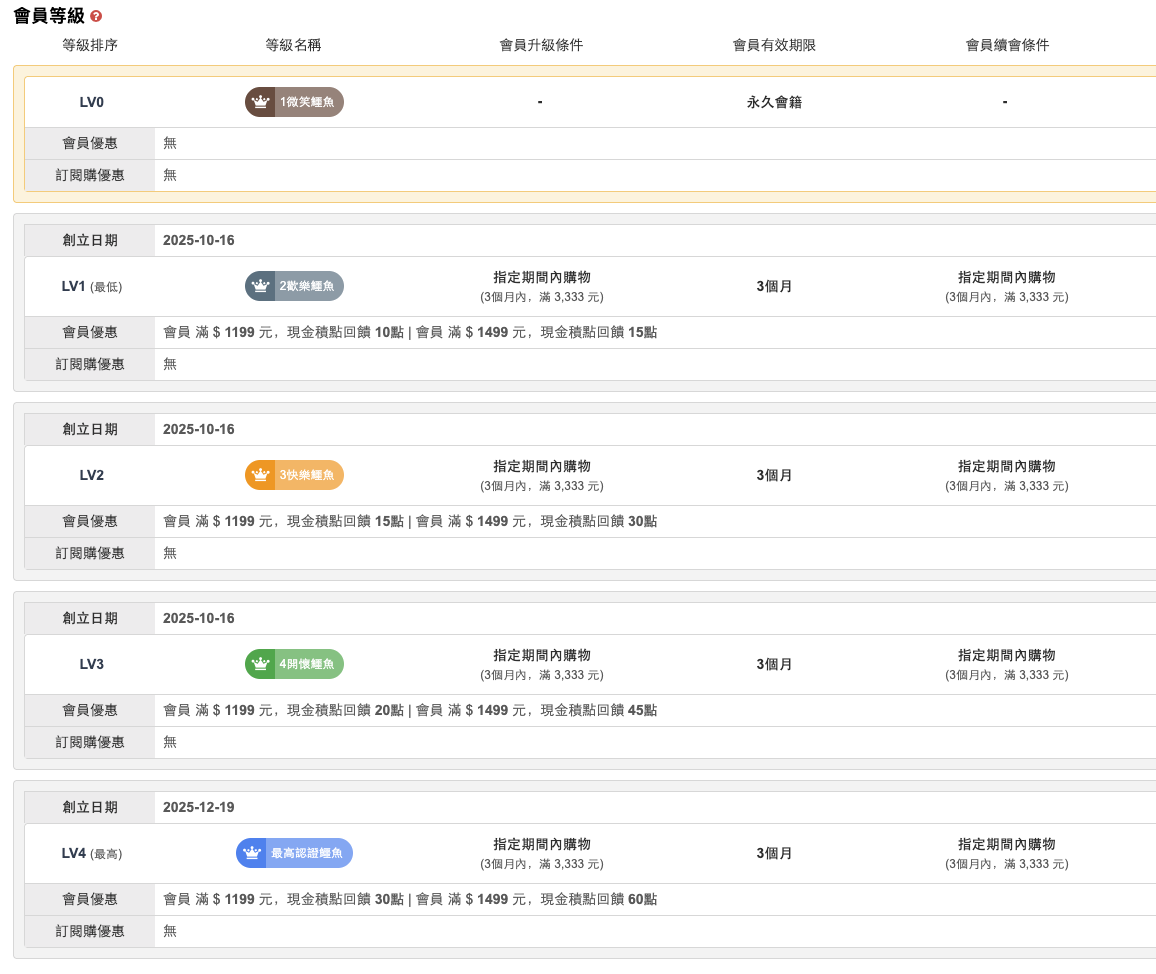 | 行動支付 | Line Pay(未開通) | 無 | 即時 | 依第三方授權結果相同 |